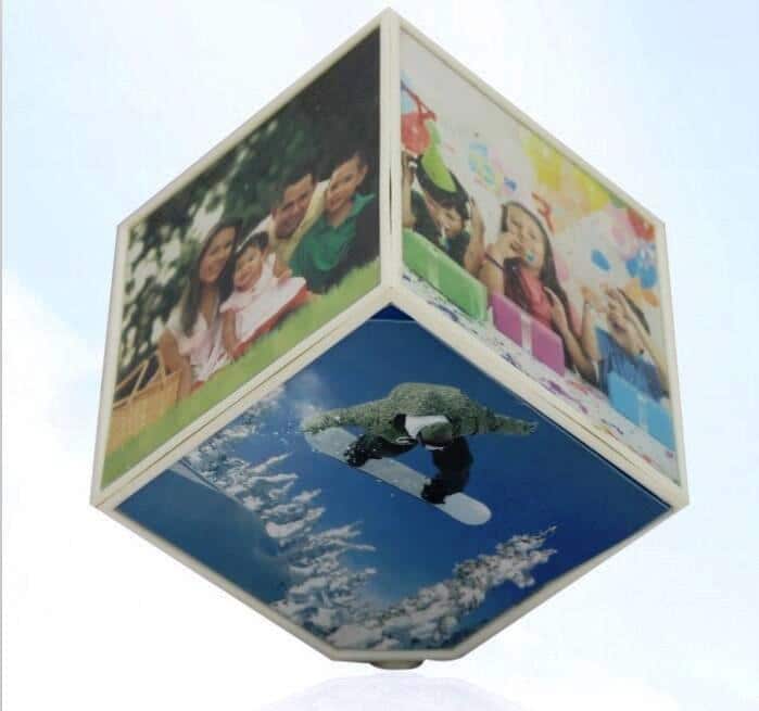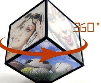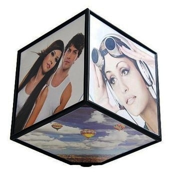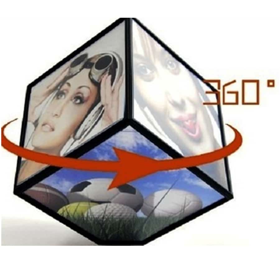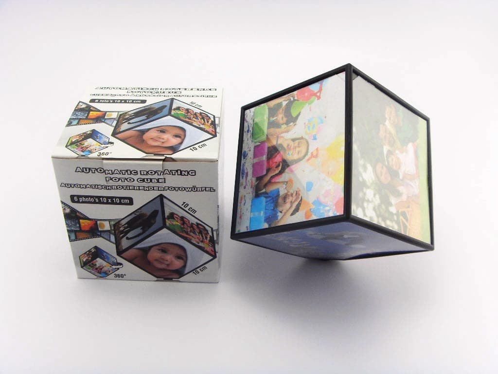 מעמד תמונת מסגרת המסתובבת אוטומטית על השולחן בצורת קובייה, ומאפשרת הצגה של 6 תמונות בו זמנית, בשטח קטן ומדליק.