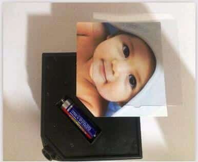 קוביית תמונות מסתובבת זאת מופעלת באמצעות סוללה אחת AAA (לא כלולה)