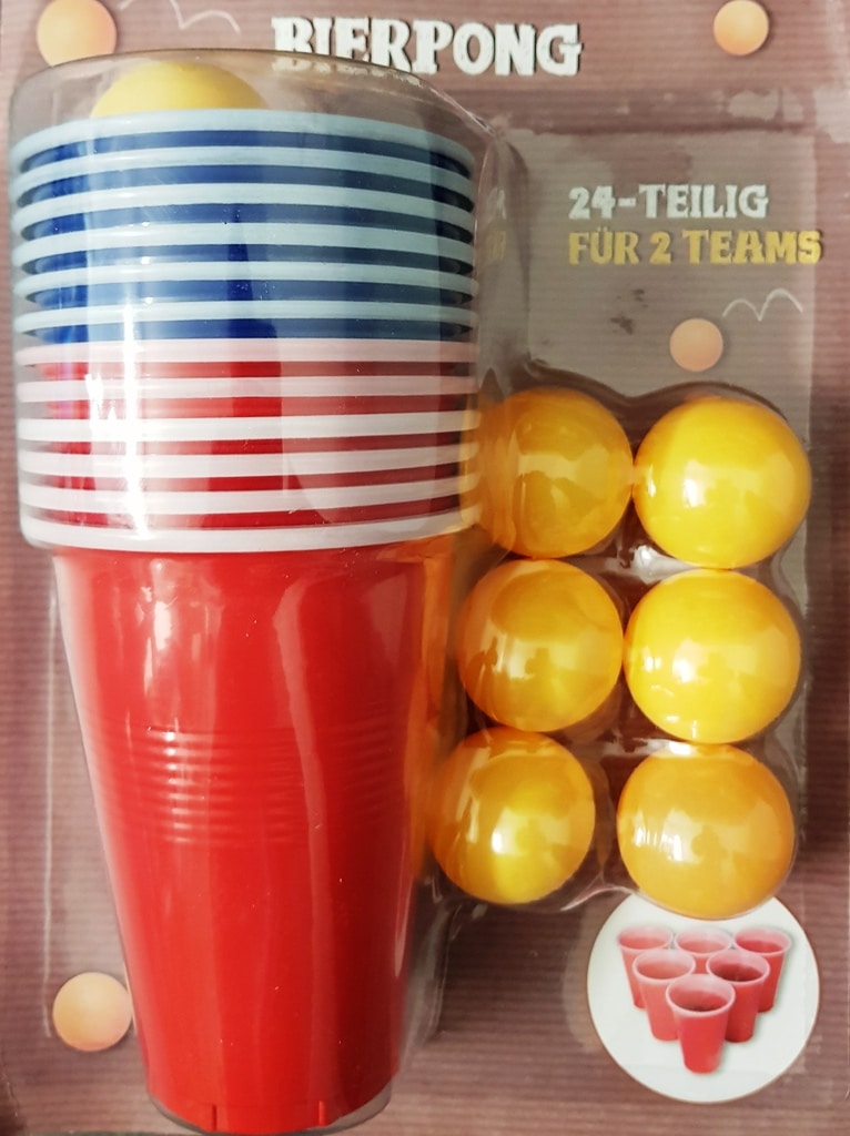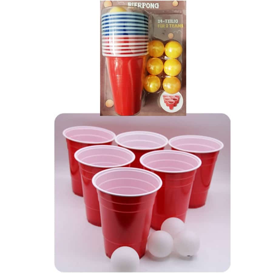 הערכה כוללת: 12 כוסות מפלסטיק (6 לכל אחד/קבוצה: 6 בצבע כחול + 6 בצבע אדום) + 12 כדורי פינגפונג (בצבע כתום).