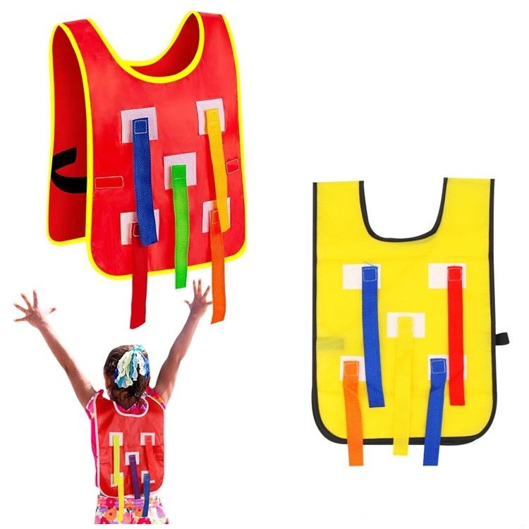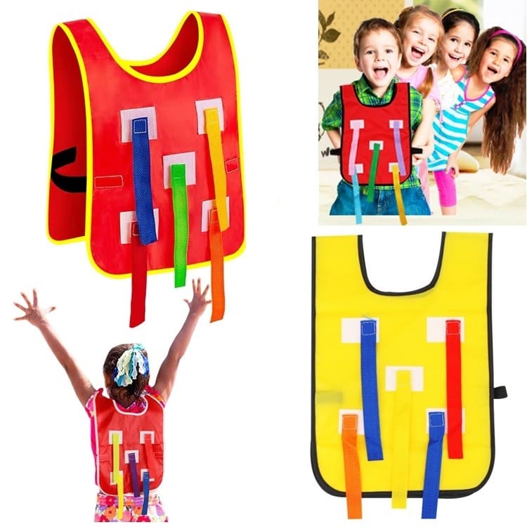 הסט כולל: ווסט בצבע צהוב + ווסט בצבע אדום + 10 רצועות במגוון צבעים הנצמדות בסקוץ’ לווסטים (5 רצועות לכל ווסט).