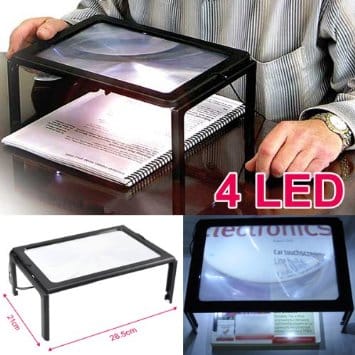 זכוכית מגדלת שולחנית אולטרה גדולה וקלת משקל ,בגודל המדמה דף A4 כמעט שלם ,מעניקה הגדלה של פי 4. בנוסף, ע”מ שתראו ממש ממש טוב ישנה תאורת לד הממוקמת בכל ארבעת פאות המגדלת, המופעלת באמצעות זוג סוללות AAA (לא כלולות).