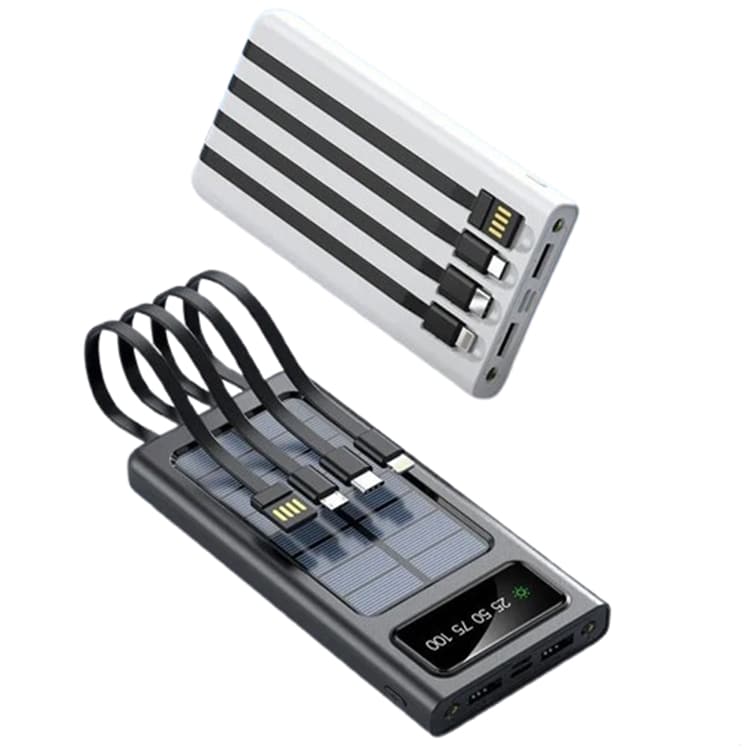 מטען סולארי עם מסך תצוגה דיגיטלי וכבלים מובנים – 10,000mAh