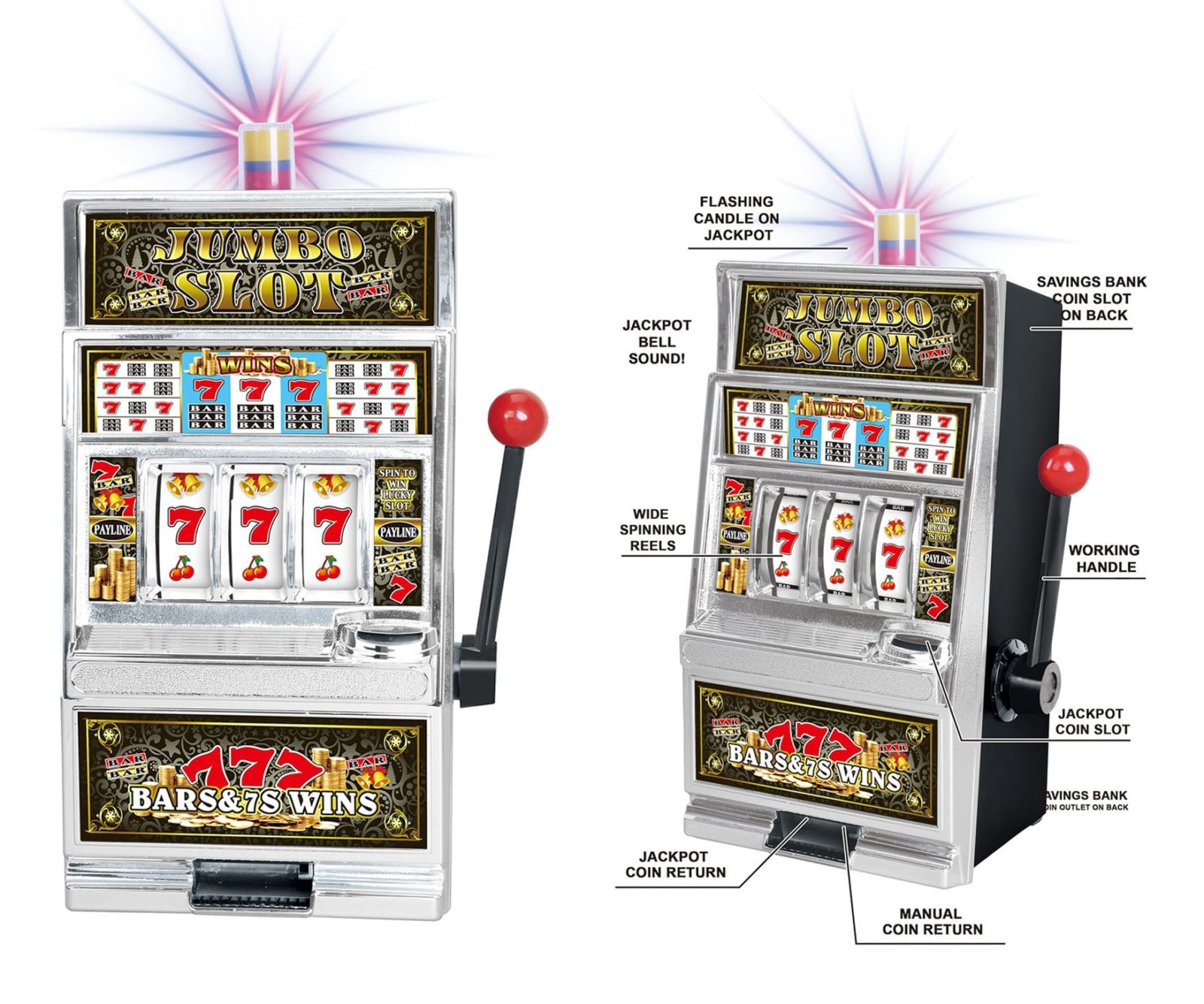 דף הבית » מנוע המתנות » מכונת מזל סלוט-משין ג'מבו 38 ס"מ – Jumbo Slot Machine