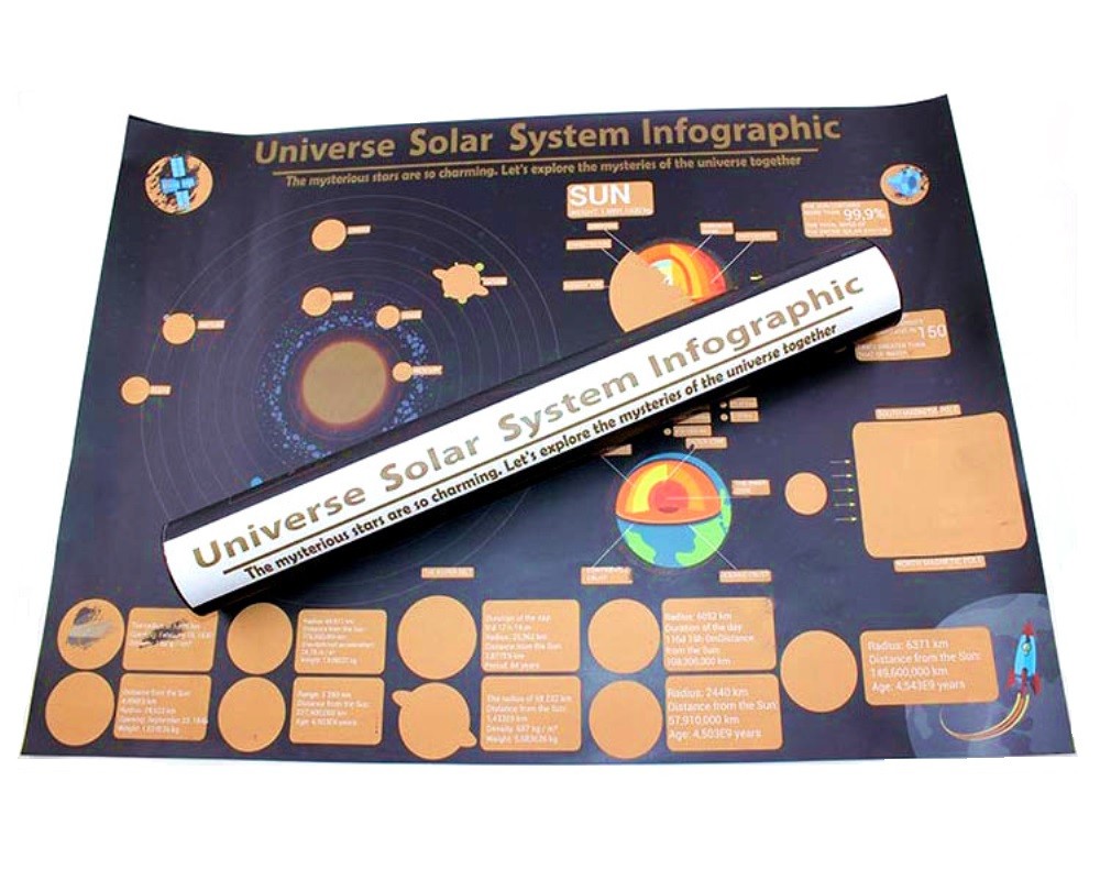 בואו לחקור את המסתורין של תשעת הקווים העיקריים של מערכת השמש בצורה גרפית, פשוטה ואינטואיטיבית – בעזרת מפת גירוד מתגרדת של מערכת השמש.