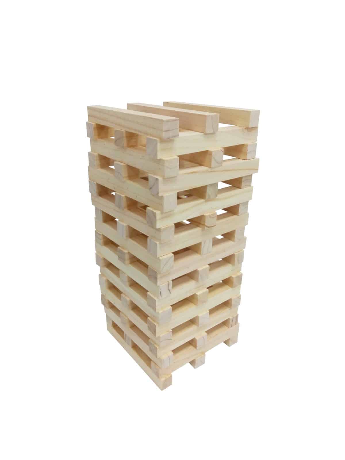 המשחק כולל: 60 מלבנים מעץ בגודל 21X2.5X2.5 ס”מ