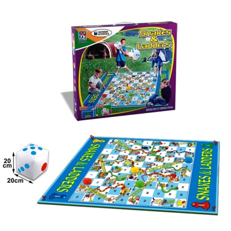 משחק לחצר/גינה: משחק סולמות ונחשים ענק + קוביה מתנפחת