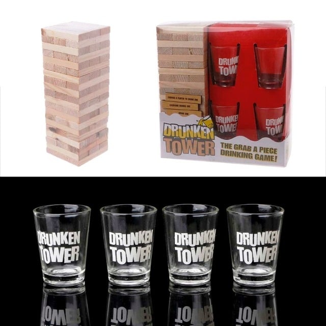 כוסות צ’ייסר: 4 כוסות זכוכית עם הכיתוב Drunken Jenga