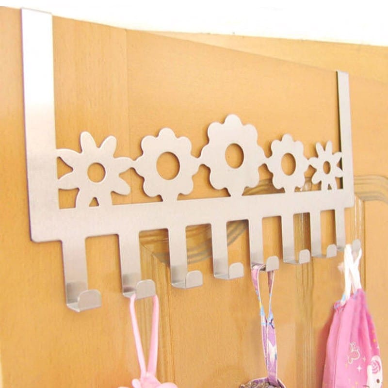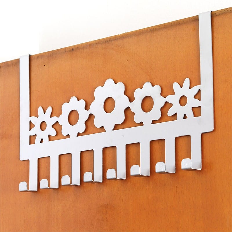 מתלה בגדים לדלת ללא ברגים – עשוי מתכת, פרחים ירוק