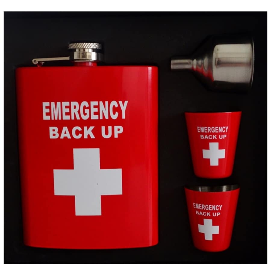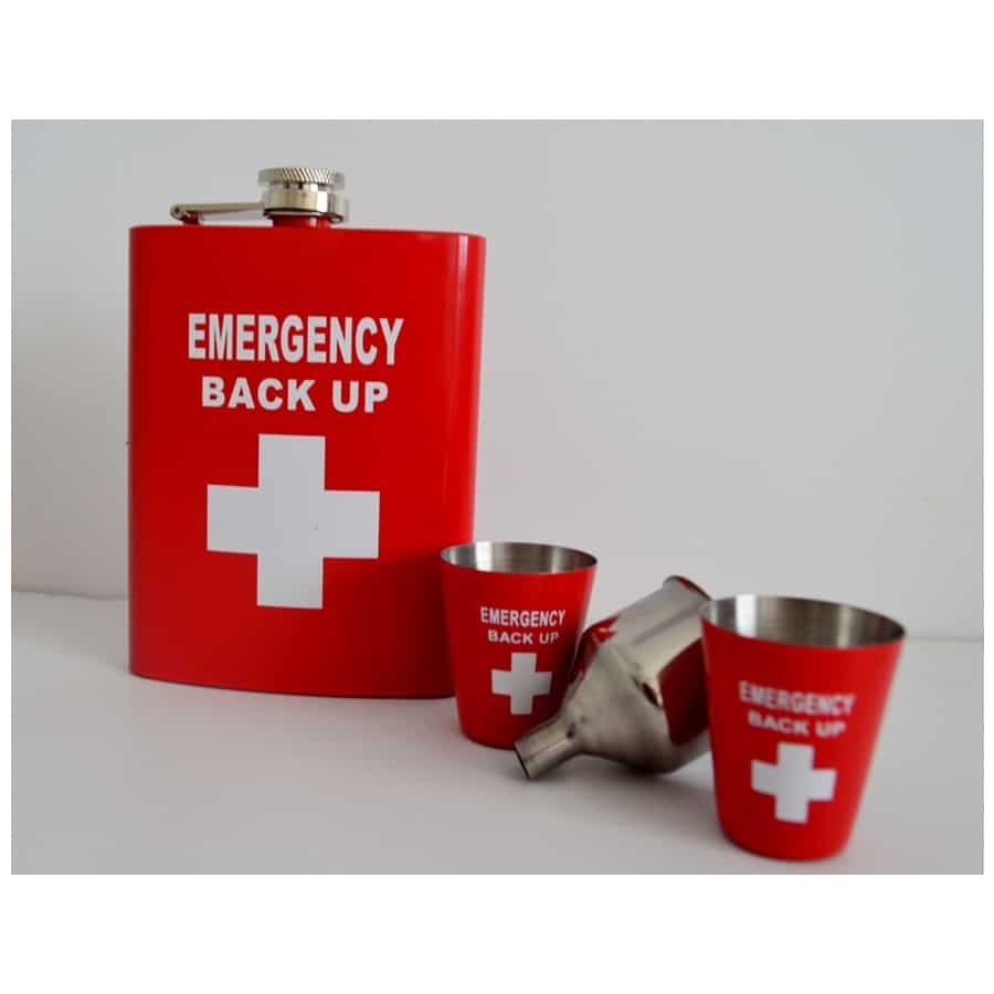 סט פלאסק 240 מ”ל+2 כוסות+משפך, למקרה חרום EMERGENCY BACK UP –