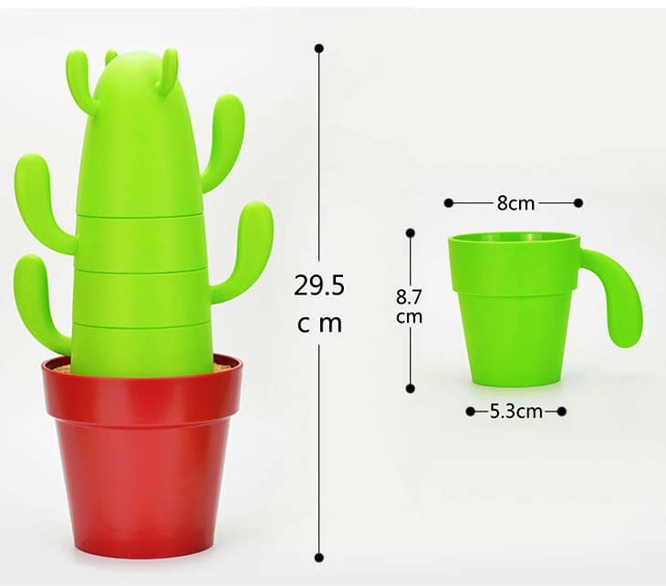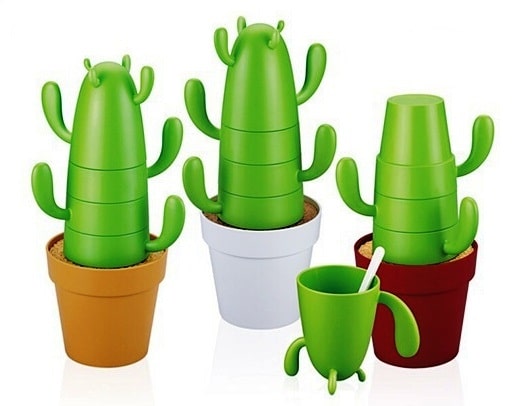 רק כשמתקרבים ונוגעים בקקטוס (אל דאגה! זה ללא קוצים!), מגלים שהוא מתפרק לסט מרהיב של כוסות עם ידיות וכפיות