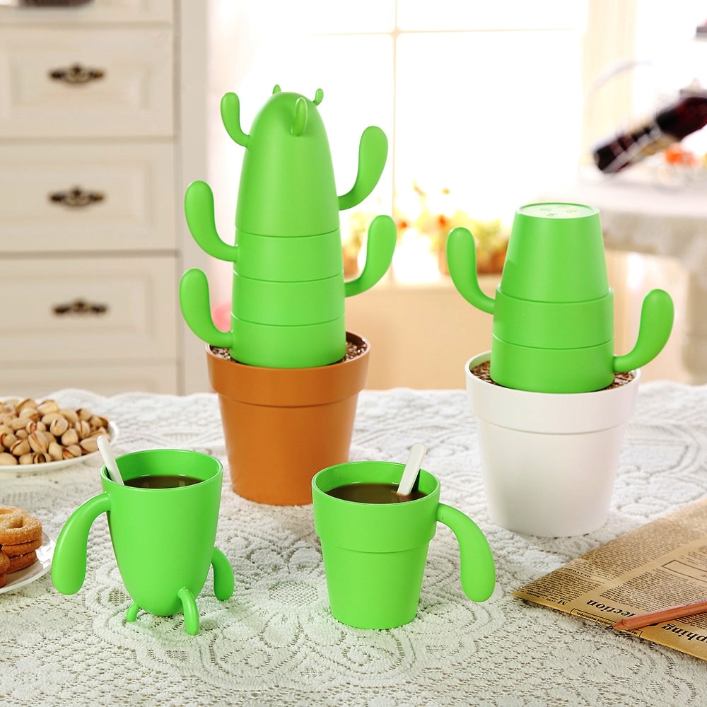 דף הבית » מנוע המתנות » סט 4 כוסות וכפיות בעיצוב עציץ קקטוס