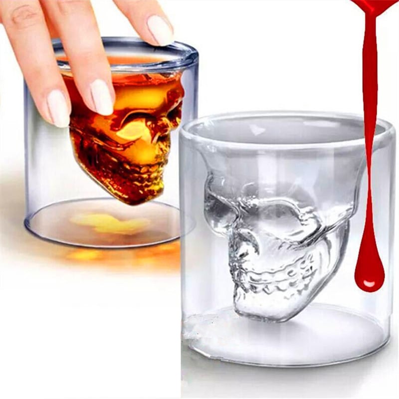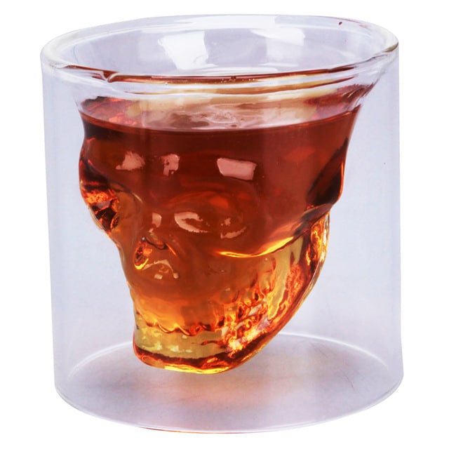 כוס זכוכית איכותית עם שכבה פנימית בעיצוב גולגולת
