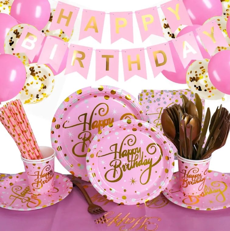 מחפשים עריכת שולחן שתשאיר רושם? הסט המפואר שלנו בעיצוב נקודות זהב בסגנון מרהיב – וורוד חגיגי – והוא הפתרון המושלם לכל חגיגת מסיבת יום הולדת.