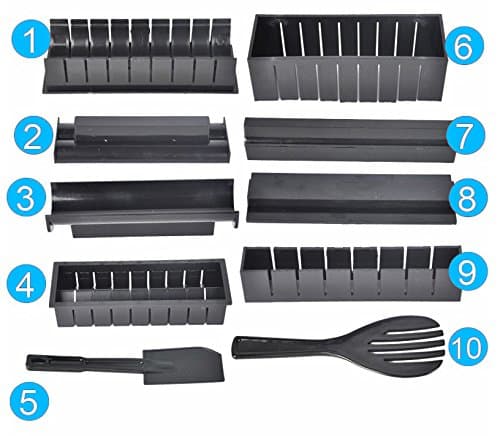 תכולת הערכה: הערכה מכילה 11 פריטים שונים המשמשים להכנת 5 צורות סושי מיוחדות.