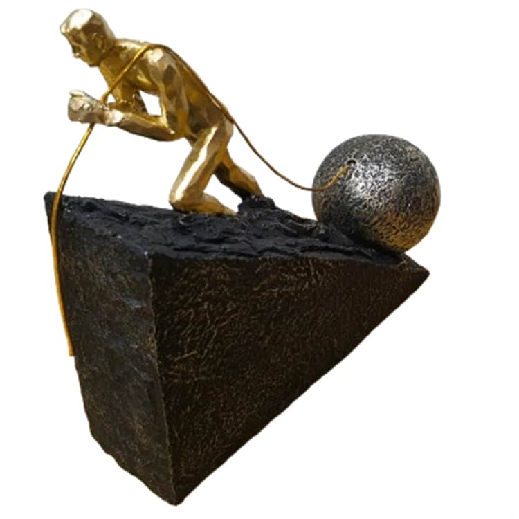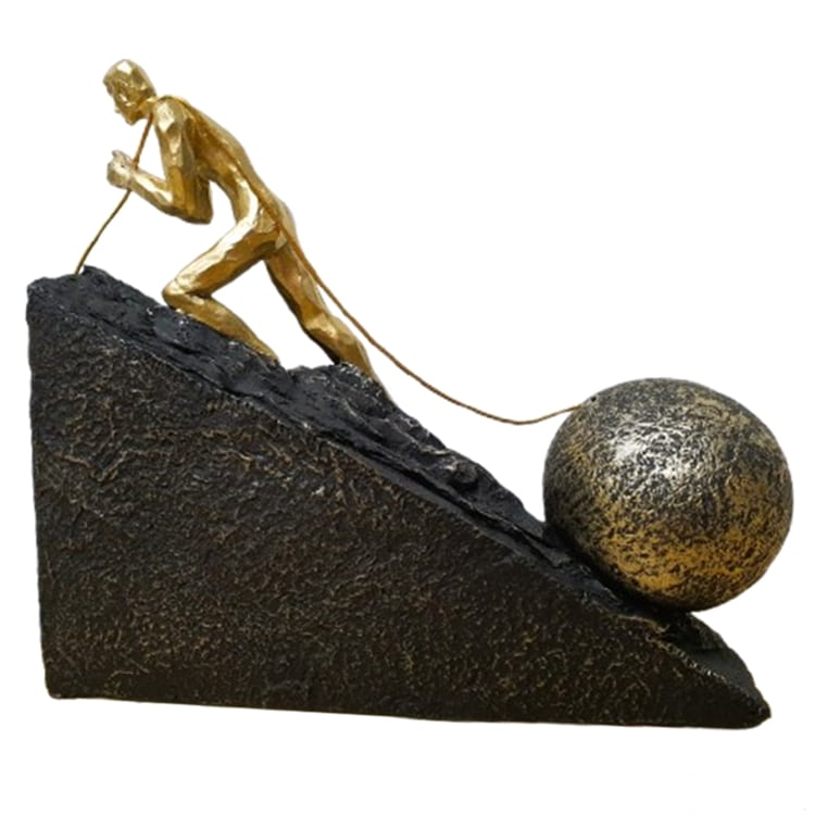 הפסל עוצר הנשימה “איש מוזהב מושך כדור בעלייה” הוא הרבה יותר מיצירת אומנות – הוא הצהרה. דמות אנושית מוזהבת, רזה ואלגנטית, נראית באמצע מאמץ עילאי – מושכת אחריה כדור כבד במעלה מדרון תלול. רגע אחד שמאגד בתוכו מסר עוצמתי: הכוח האנושי להתמודד עם האתגר, לשאת אחריות ולהמשיך קדימה.