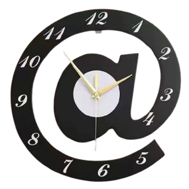 שעון הקיר “כרוכית @” הוא שילוב מדויק בין פונקציונליות לעיצוב מודרני עם קריצה חכמה לעולם הדיגיטל.