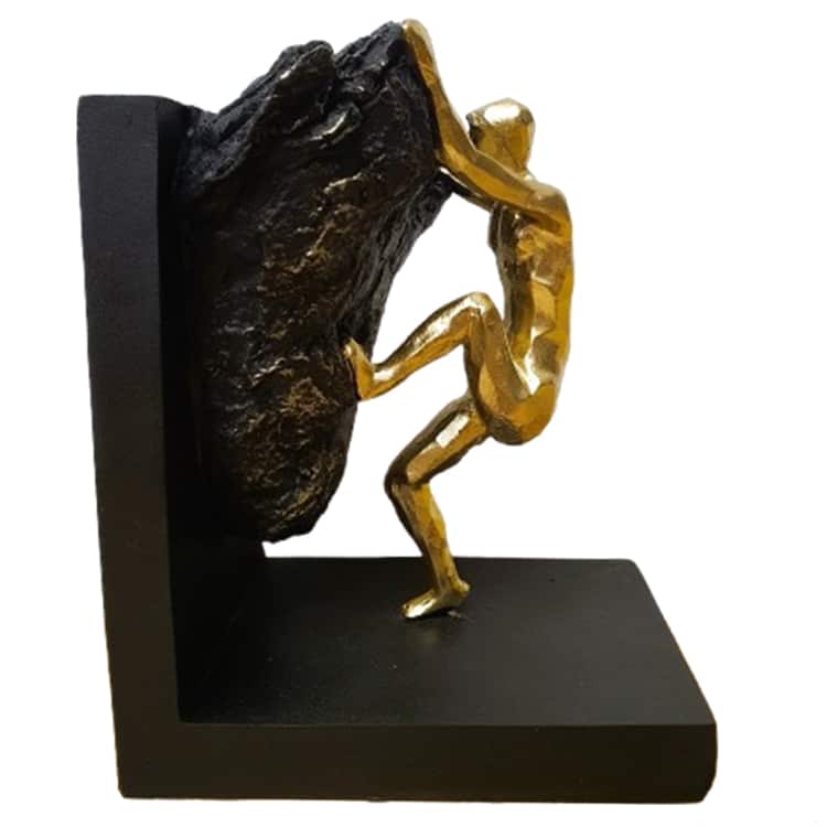 תומך ספרים “איש מוזהב מטפס על סלע” – סמל להתמודדות ונחישות